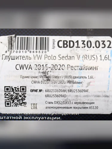 | Наименование | Глушитель VW Polo (11-) задняя часть CBD CBD cbd130.032 в Крымске Краснодарском крае |